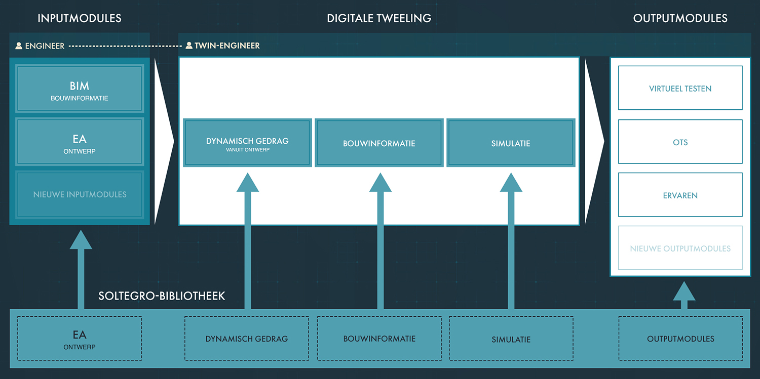 Informatieve infographic over Digitale tweelingen in de infrastructuur. Alle visuals van concept tot eindproduct zijn door mij gemaakt.
